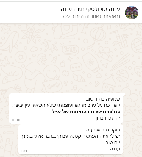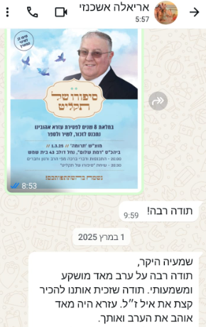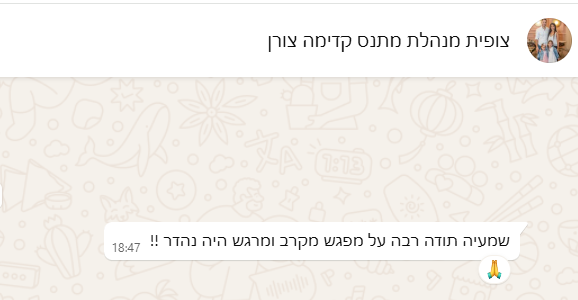 תודה רבה על מפגש מקרב ומרגש. היה נהדר!